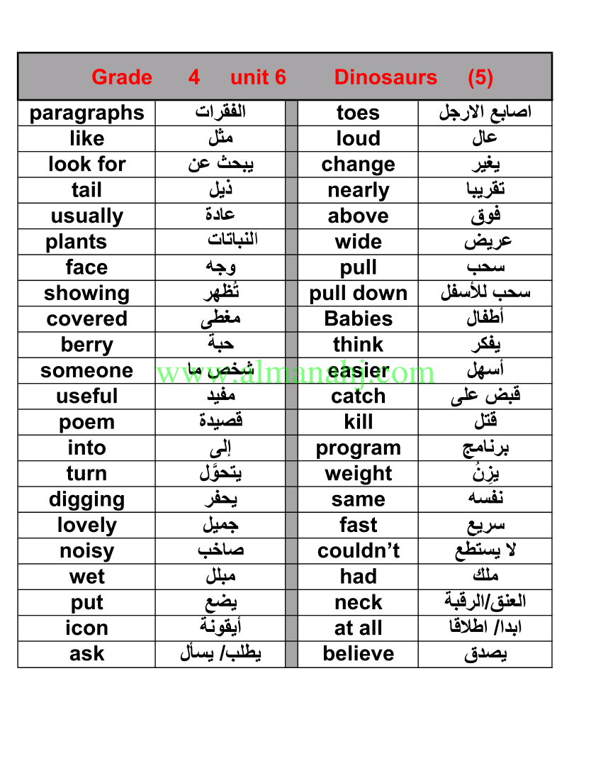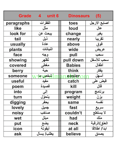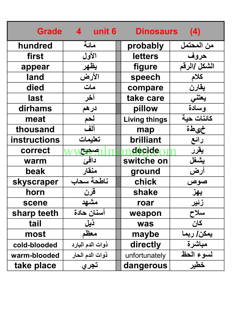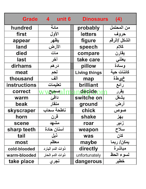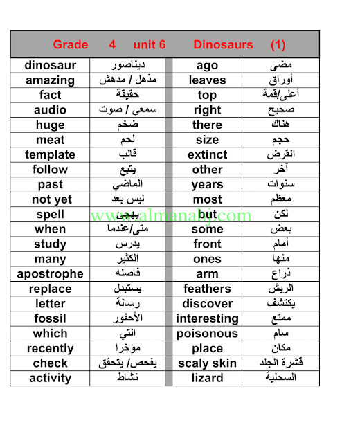 | اسم الملف: صف رابع انكليزي مفردات وحدة الديناصورات.pdf | |