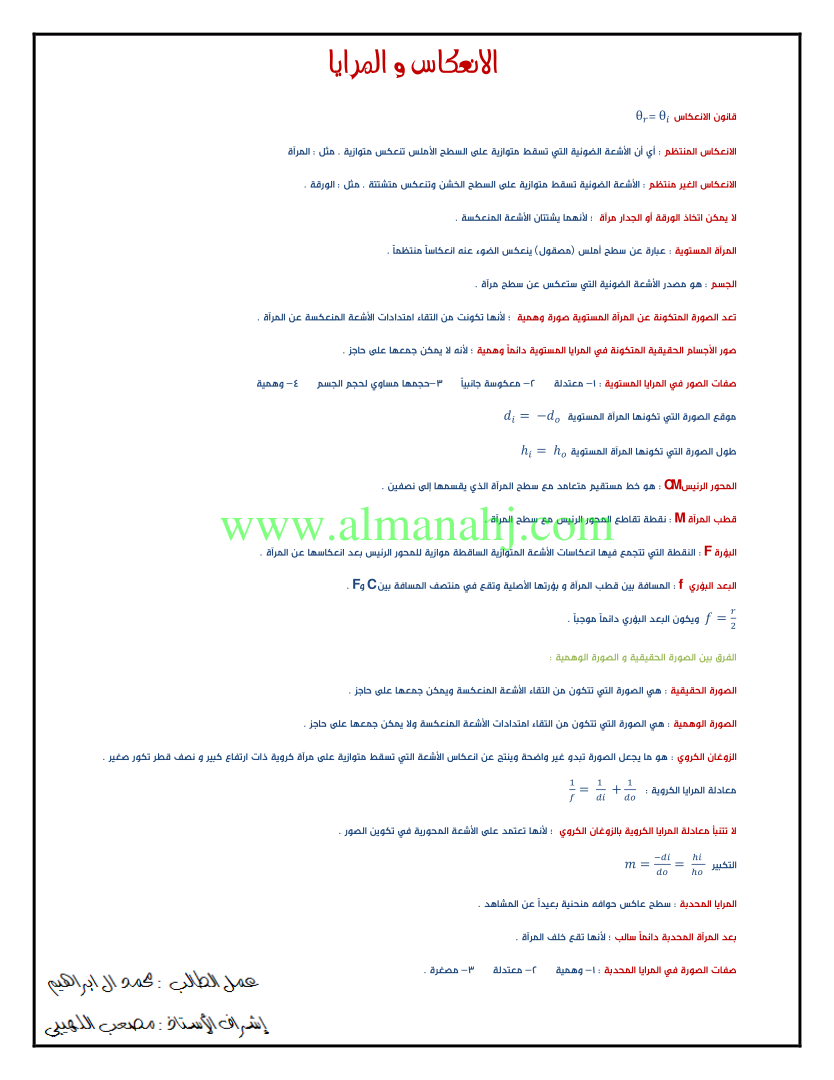 | اسم الملف: تلخيص 7 اساسيات الضوء ـ الانعكاس والمرايا ـ الانعكاس والعدسات ـ التداخل والحيود ـ المجالات الكهربائية ـ الكهرباء التيارية |