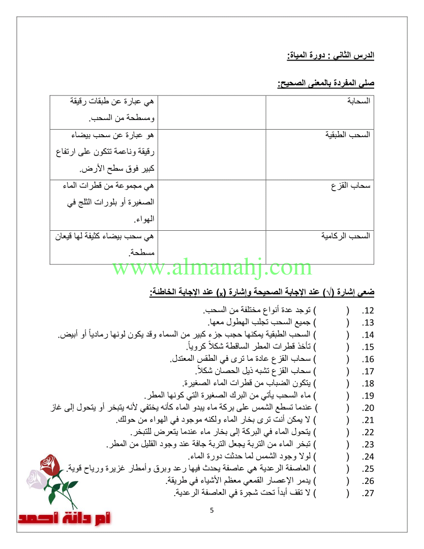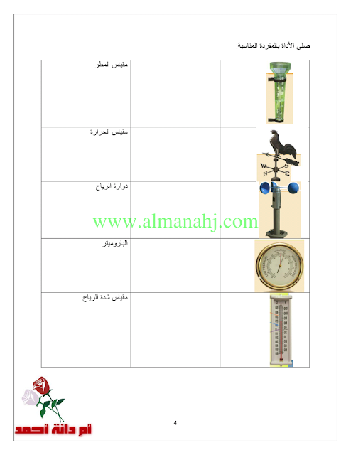 | اسم الملف: رابع علوم امتحان الوحدة السابعة التغيرات في الطقس.pdf | |