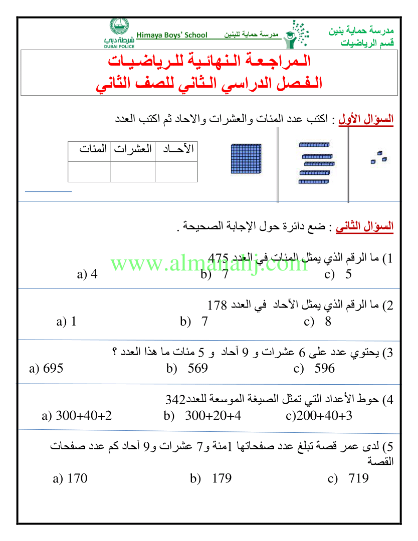 | اسم الملف: ثاني رياضيات مراجعة عامة للفصل الثاني.pdf | |