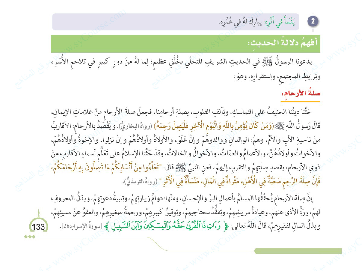 الصف الثامن, الفصل الثالث, تربية اسلامية, حل درس (صلة الأرحام)