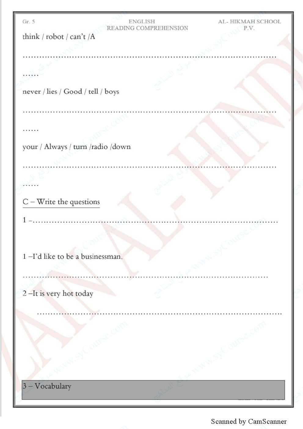 الصف الخامس, الفصل الثالث, لغة انكليزية, ملزمة شاملة لمنتصف الفصل الثالث للتحميل اتبع الرابطين الاتيين: الجزء الاول: http://aefiles.website/do.php?id=513 الجزء الثاني: http://aefiles.website/do.php?id=514